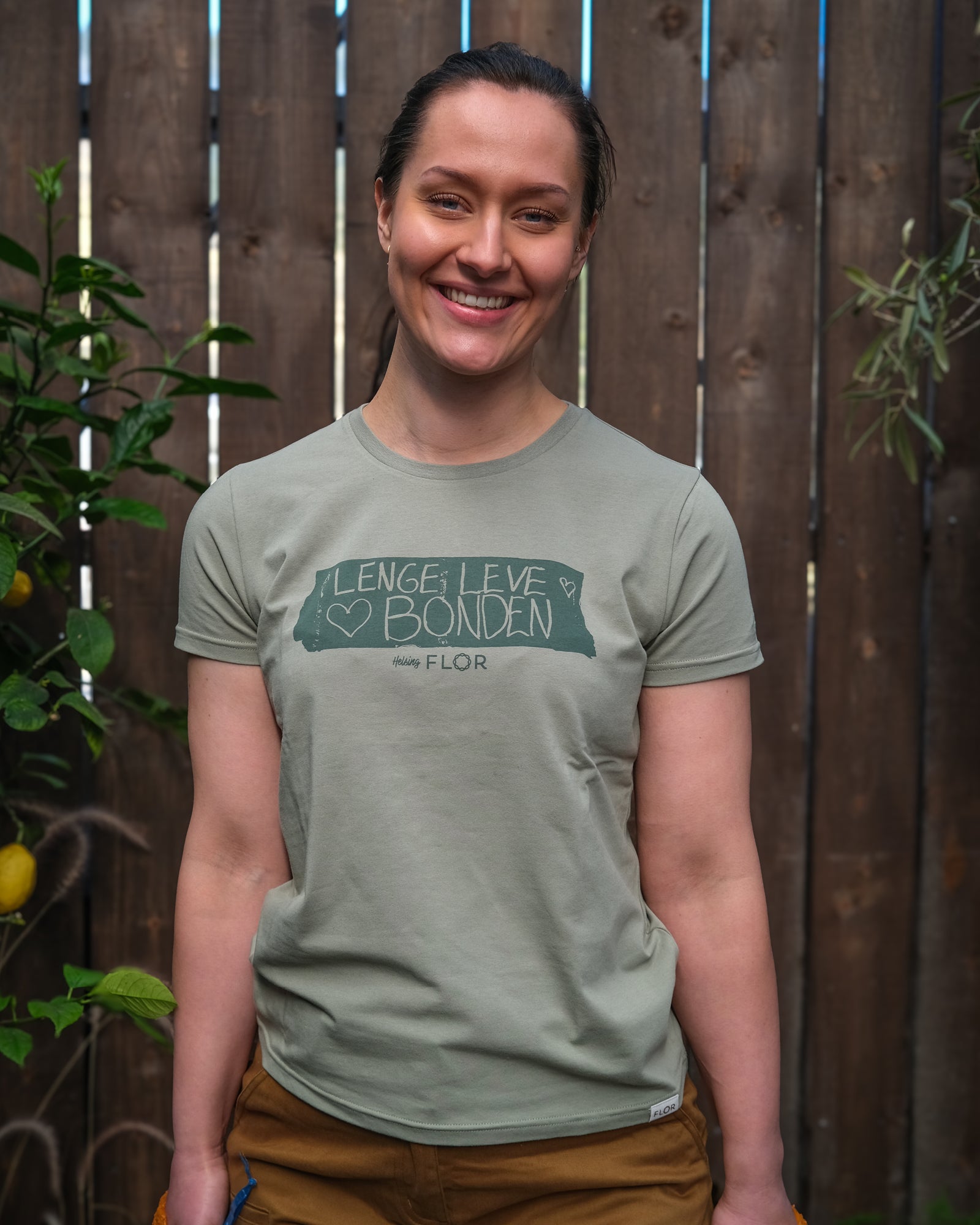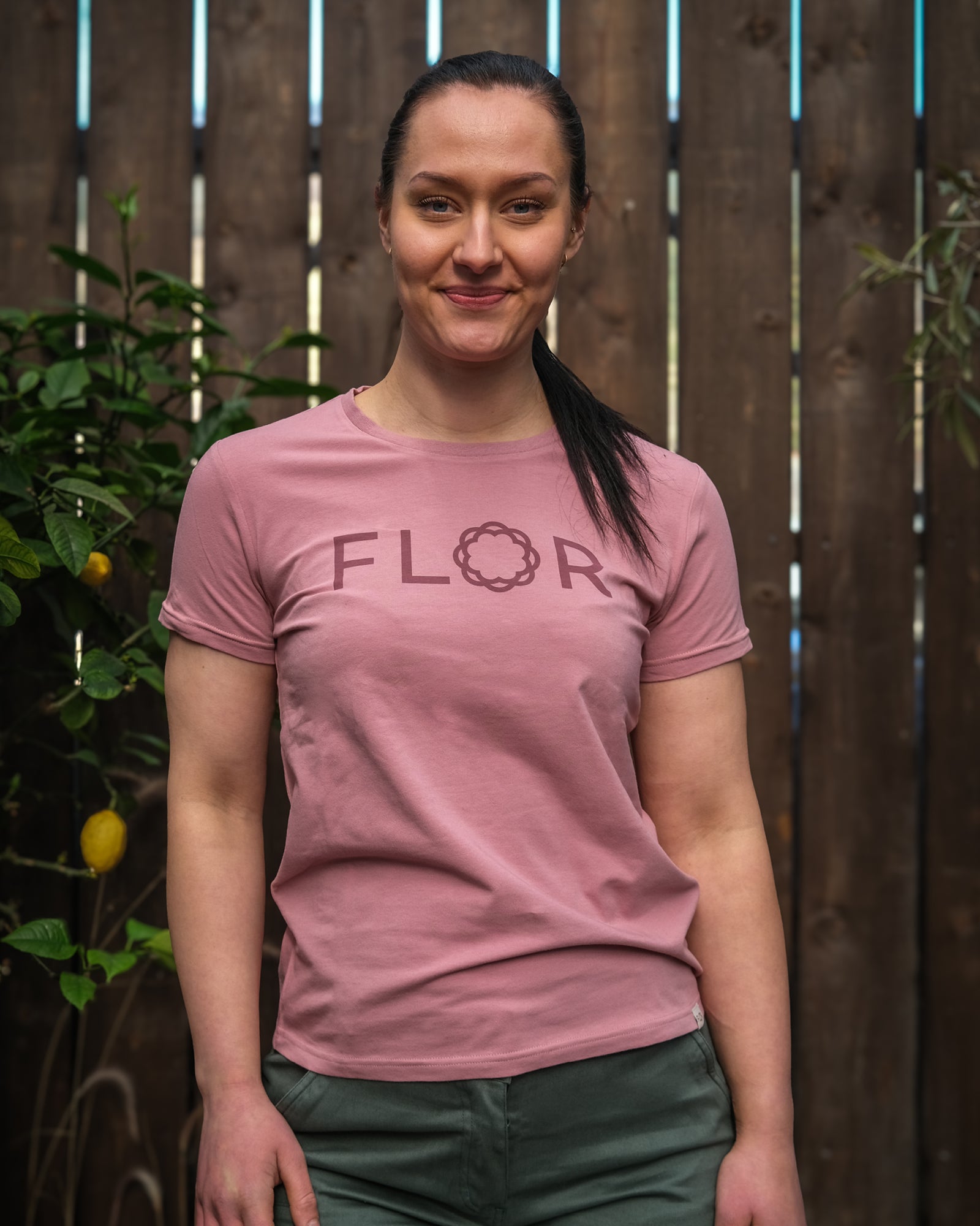 Flor logo t-skjorteVanlig pris 399,00 krStrågul Lys rose Lys blå Lindegrønn