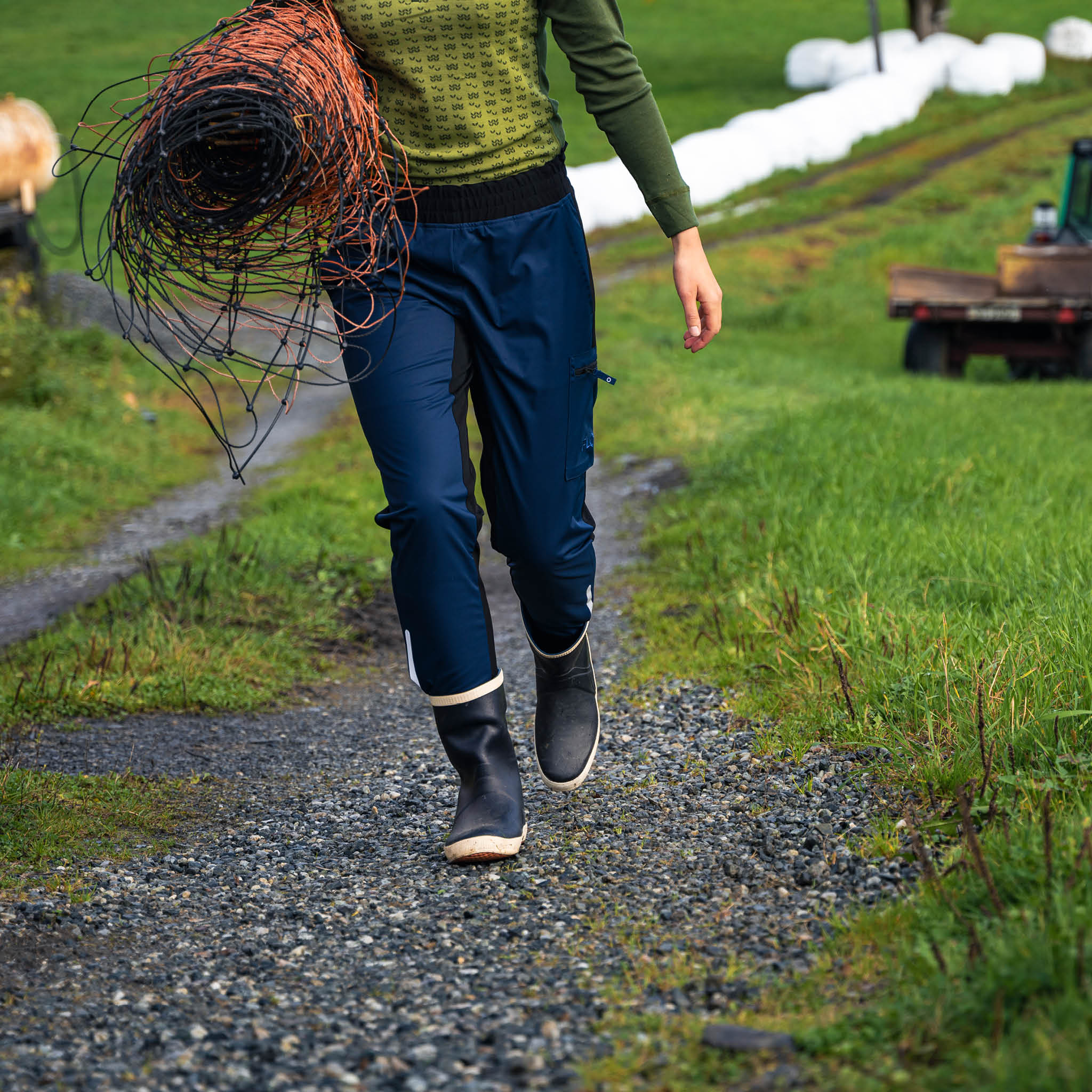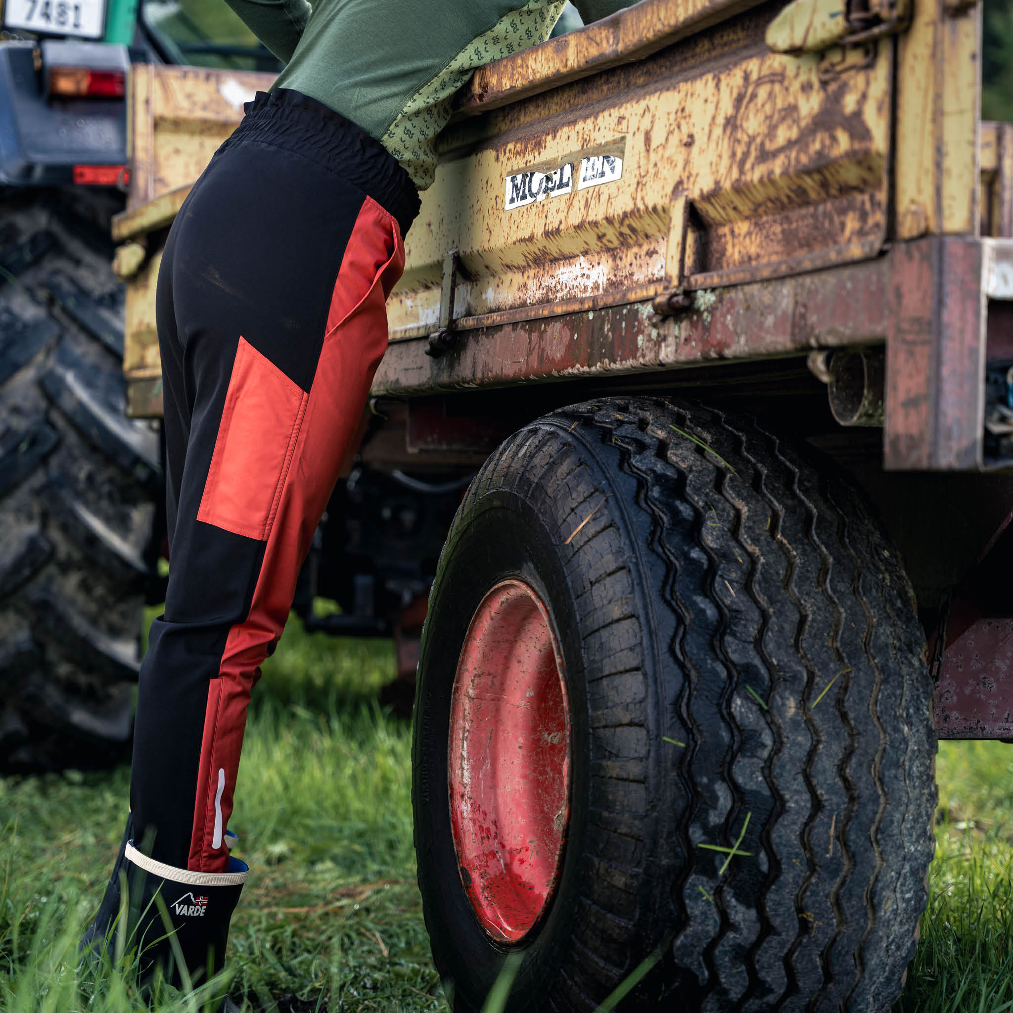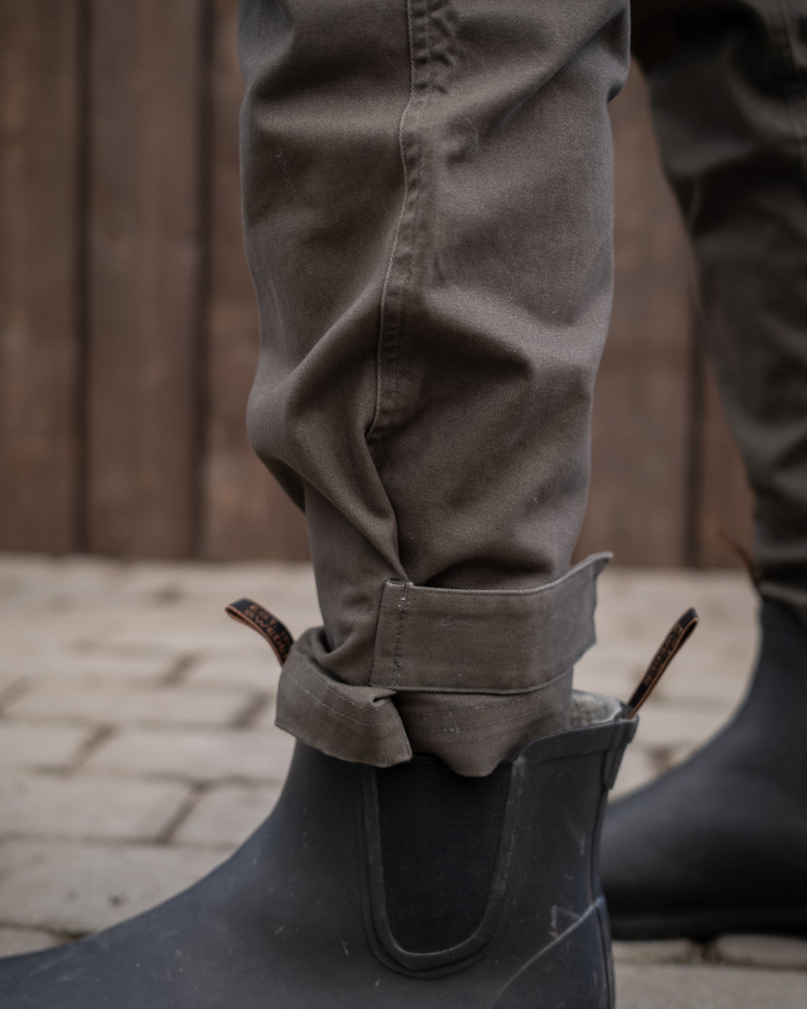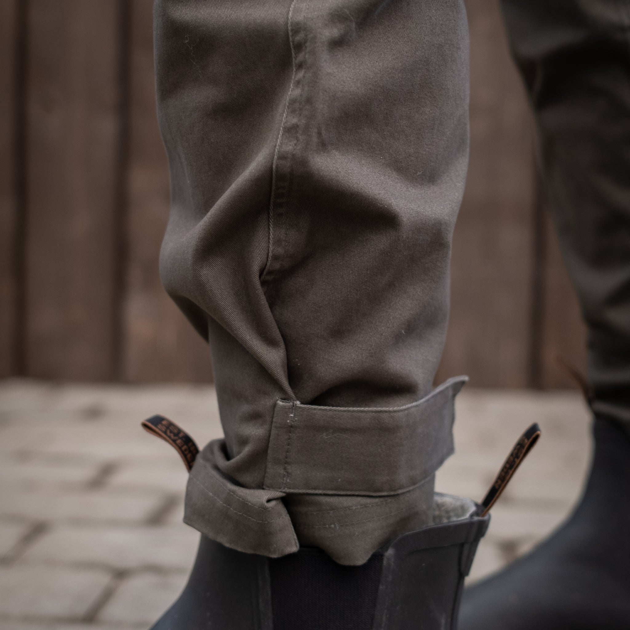 Jeg bruker denne buksen i fjøset. God med lommer og veldig grei justering i livet og på beina.