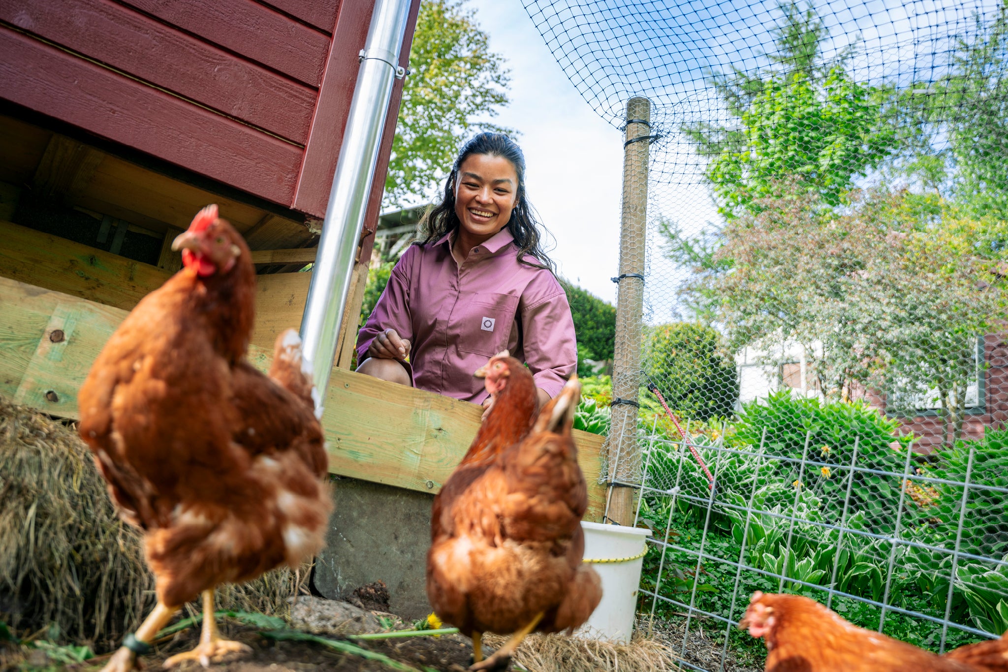I hagen møtes arbeid og ro. Her handler det om å skape, dyrke og være tett på naturen.