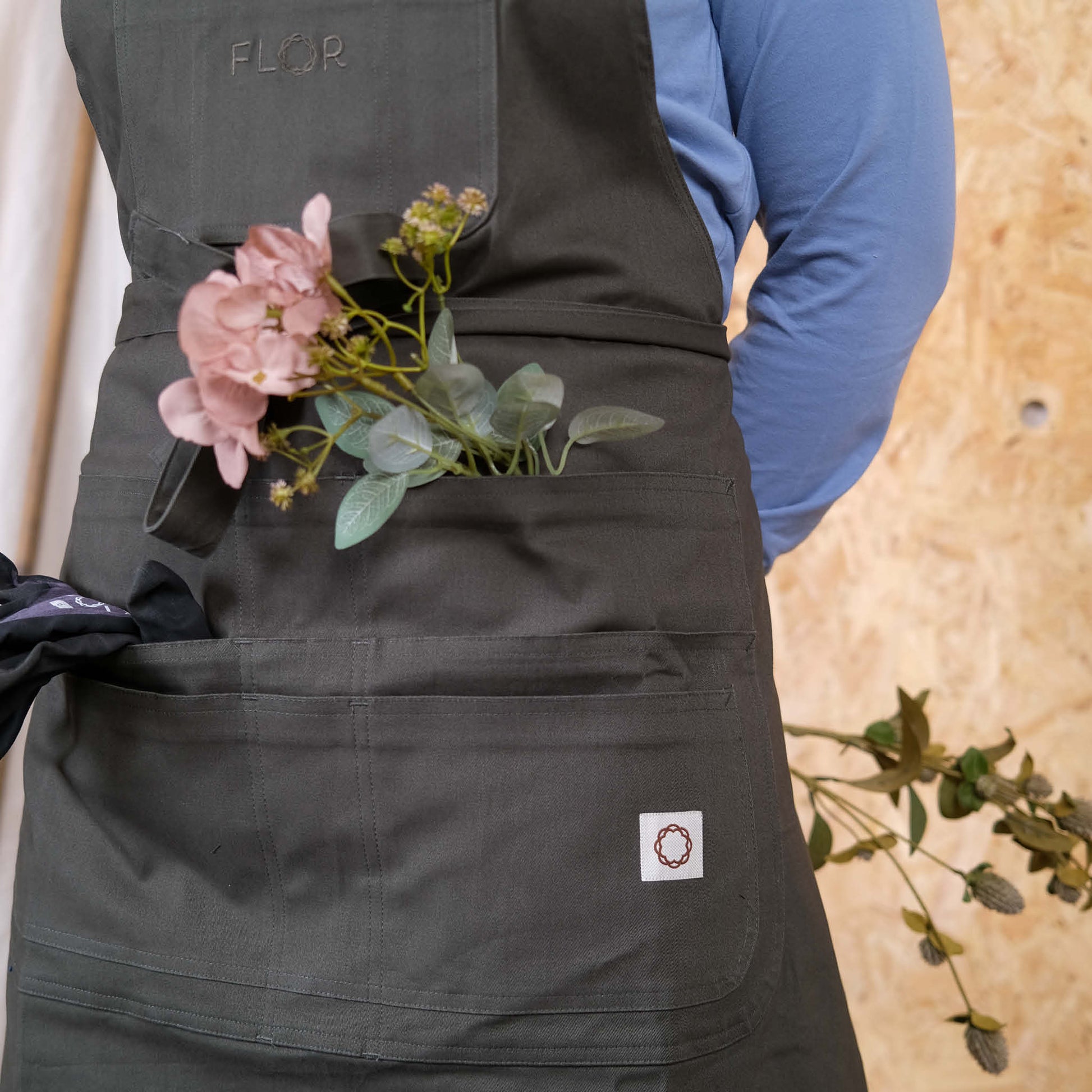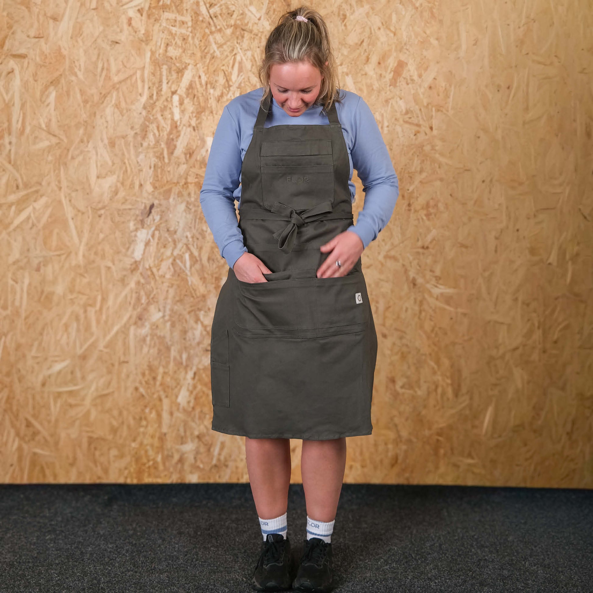 Når vi skulle lage et forkle var vi inspirert av hage og derfor heter forkle Hage. Forkleet passer perfekt til ulike oppgaver, om du skal ut i hagen, drive med formgivingsaktiviteter, bake, slakte og mye mer!