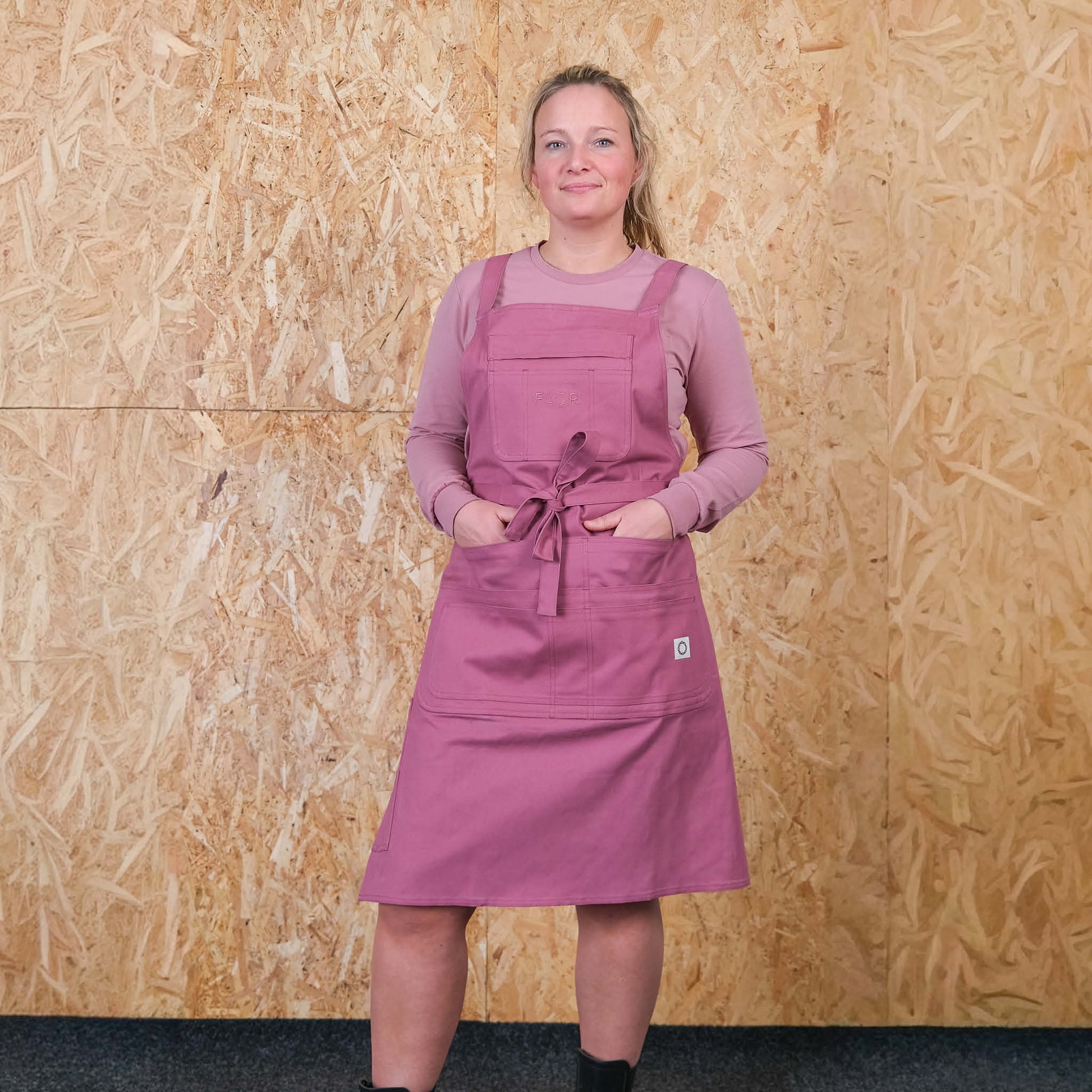 Vårt funksjonelle arbeidsforkle kommer nå i hele fire delikate farger. Forkleet er laget i behagelig bomull med stretch, slik at det er godt å bevege seg i og opplevest mykt. Forkleet er bredt og knelangt slik at det dekker godt. Dette er godt både for å unngå søl og slitasje på klærne du har under.