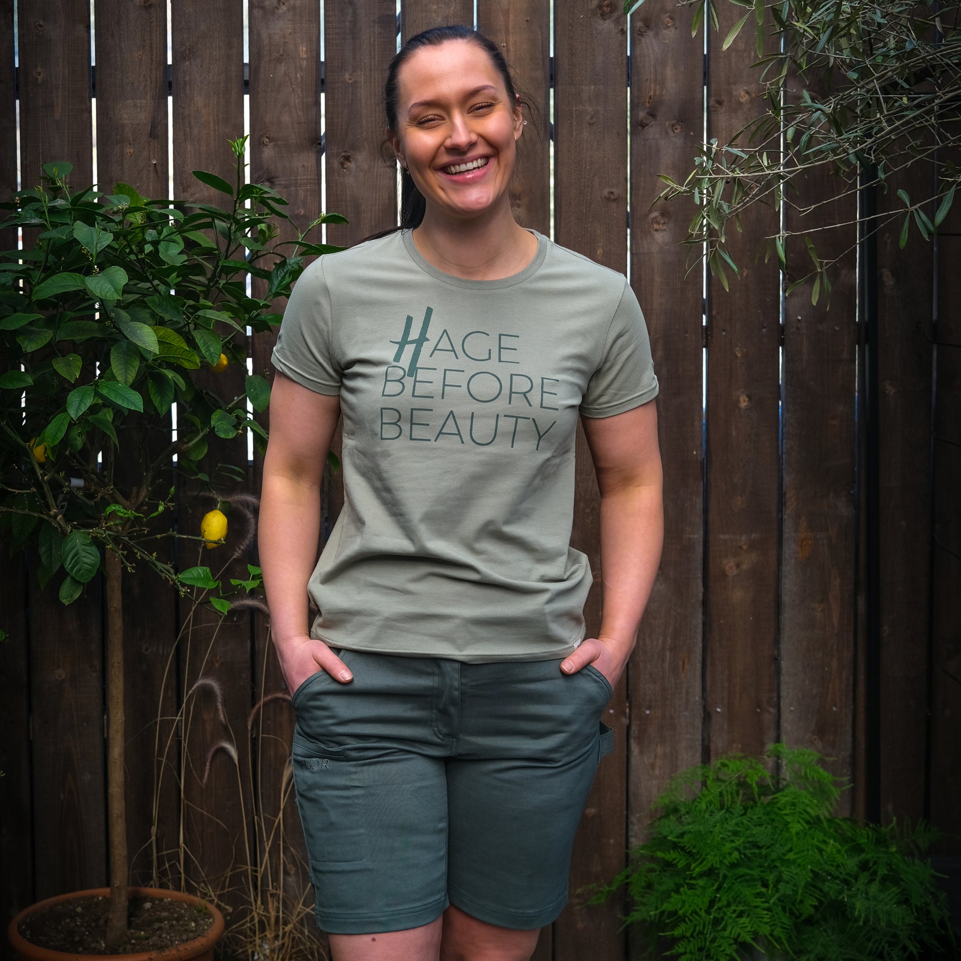 Ny t-skjorte med artig budskap😉🏘️🌸 Hage before beauty! Naturlig favoritt i hagen. 🌸