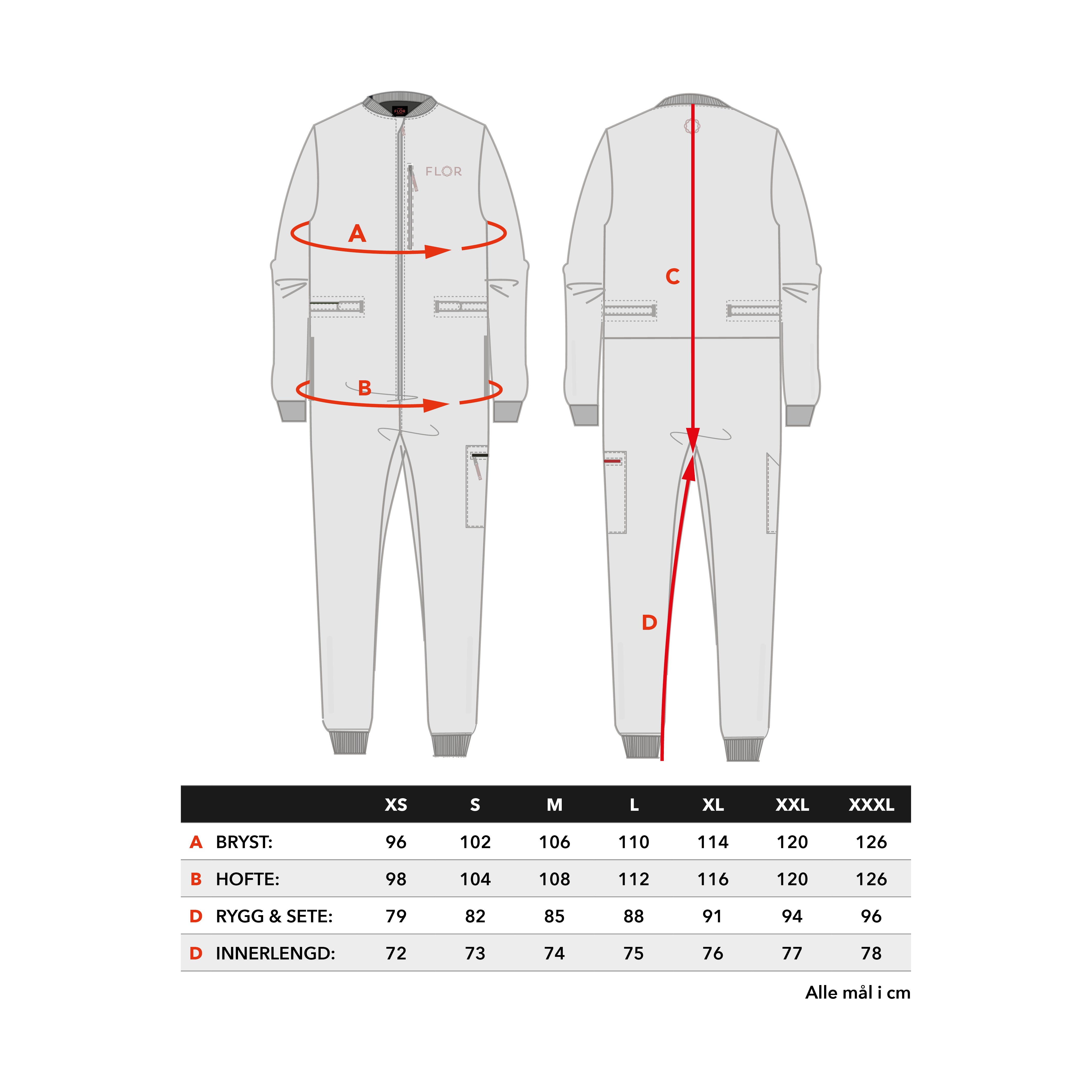 Flor kjeledress er vårt signaturplagg og bestselger. Endelig en arbeidsdress som sitter godt og samtidig er komfortabel i bruk! Å bruke denne fjøsdressen gir rett og slett en befriende følelse. Dressen er så behagelig at en knapt merker at en har den på under arbeidsøkta. 😀 Hemmeligheten er stretch i hele modellen. Dette gjør at dressen er fleksibel, og du unngår at dressen strammer over hofter, rygg, i skritt og hals. Stoffet er slitesterkt og robust, samtidig som det kjennest lett på og puster godt. I tillegg har kjeledressen fleksibel stramming på utsiden av livet, slik at dressen kan følge deg selv om kroppen forandrer seg. Rundt ankler og håndledd er det en myk og behagelig ribb, som gjør det enkelt å tre inn og ut av støvler, samt at du unngår at dressen glir over hånd og fingrer mens du arbeider.